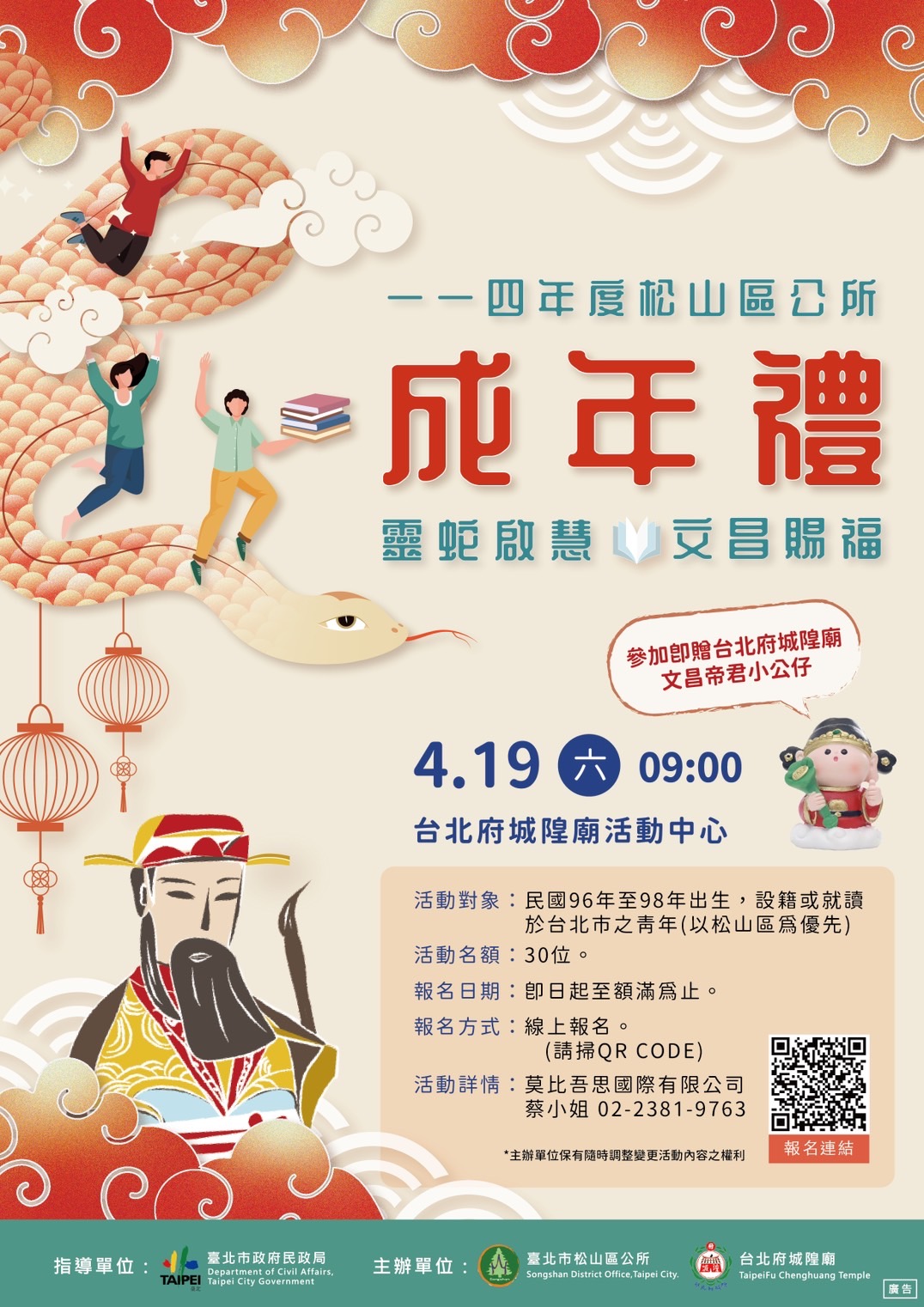 ✨114年松山區「靈蛇啟慧,文昌賜福」成年禮開始報名啦✨
